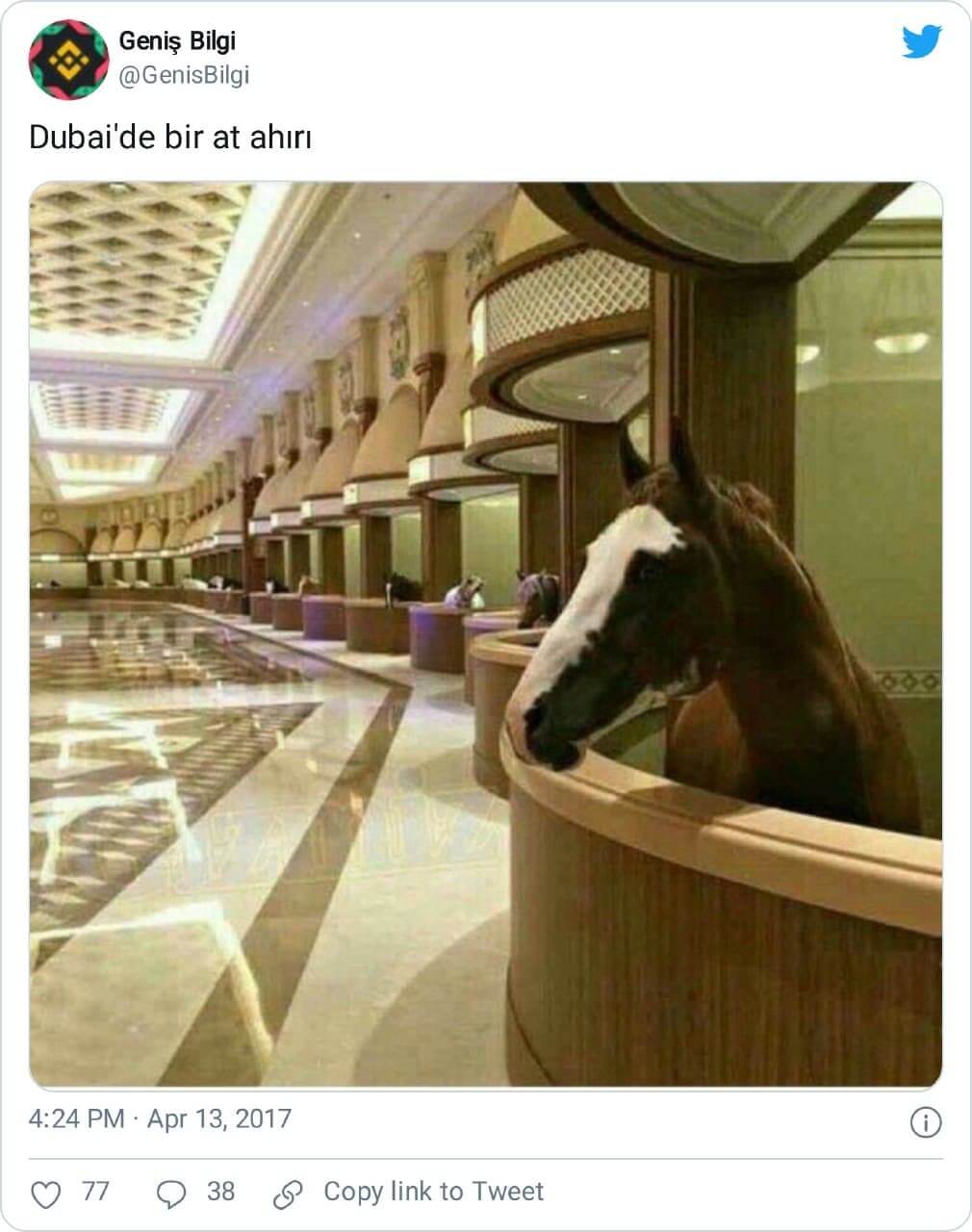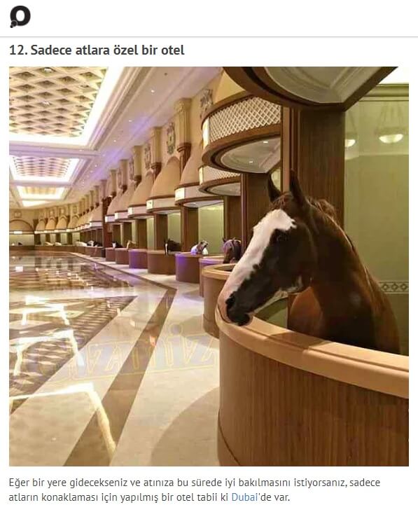 Birleşik Arap Emirlikleri’nin Dubai emirliğinde bulunan lüks at ahırı ya da oteline ait olduğu iddiasıyla sosyal medyada paylaşılan görseli ele alacağız.