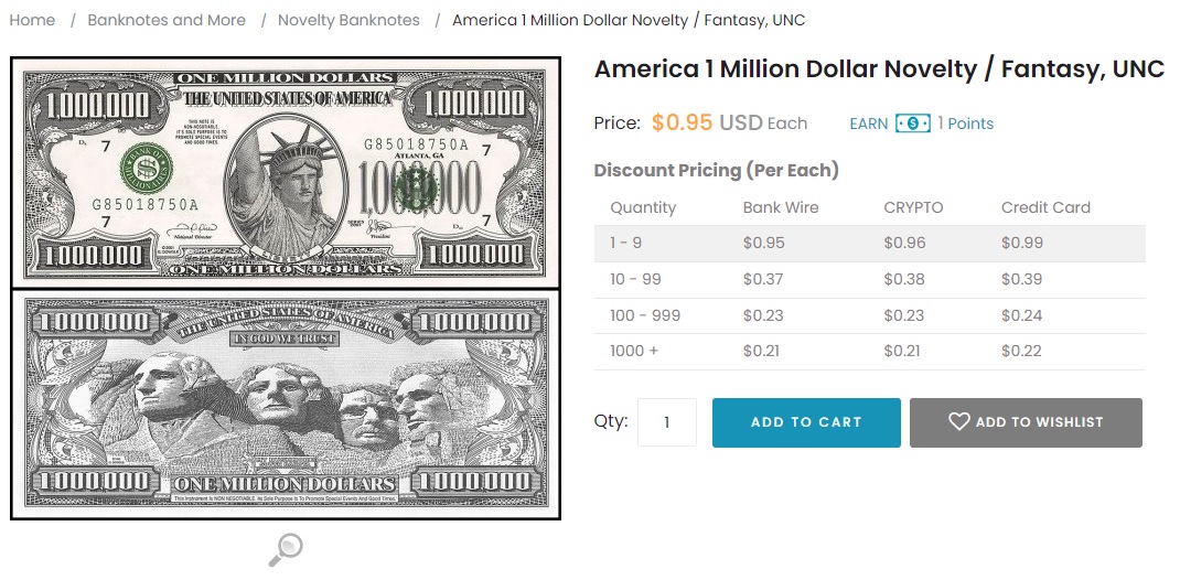 ABD’de geçmişte hiçbir zaman 1 milyon dolar tutarında bir banknot ihraç edilmedi. Dolaşımdaki banknotların tek üreticisi ABD Hazinesine bağlı Gravür ve Baskı Bürosu (Bureau of Engraving and Printing) ya da madeni paraların tek üreticisi Amerika Birleşik Devletleri Darphanesi (U.S. Mint) 1 milyon dolar küpürlü bir banknot ya da madeni para çıkarılmış değil.