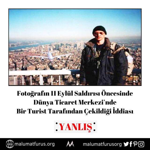 Sosyal medyanın henüz gelişmediği 2000li yılların başında e-posta zincirleri (forward e-mail) vasıtasıyla yayılan bu fotoğrafın Dünya Ticaret Merkezi’nin çatı katında çekilen olduğu iddia edilmekteydi.