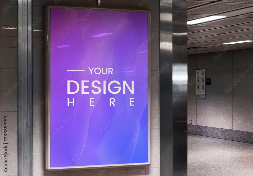 Paylaşılan görsel, stok görsel sitelerinde “Panoramik pencereye karşı ofiste dururken müşterisiyle proje ayrıntılarını tartışmak için akıllı telefon kullanan güzel iç tasarımcı” başlığıyla satılan kadın fotoğrafının ve “Metro Tüneli’nde Reklam Panosu Mockup” başlığıyla sunulan taslak şablonun birleştirilmesiyle oluşturulmuş.