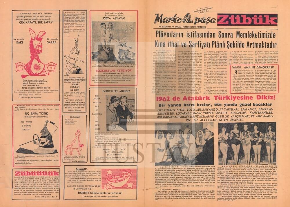 Aziz Nesin tarafından 1962 yılında çıkarılan ve mizahî kurgu haberler yayımlayan “Zübük” adlı siyasî hiciv yayınının 1 Ekim 1962 tarihli 35. sayısında yer alan uydurma bir tekel reklamı.