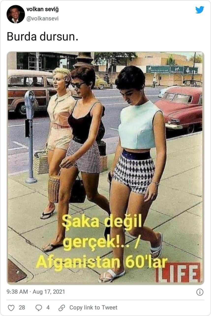 1960 yıllarda Afganistan sokaklarında çekildiği iddiasıyla bahse konu fotoğrafı aktaran paylaşım ve gönderilerden örnekler şöyle sunulabilir:
