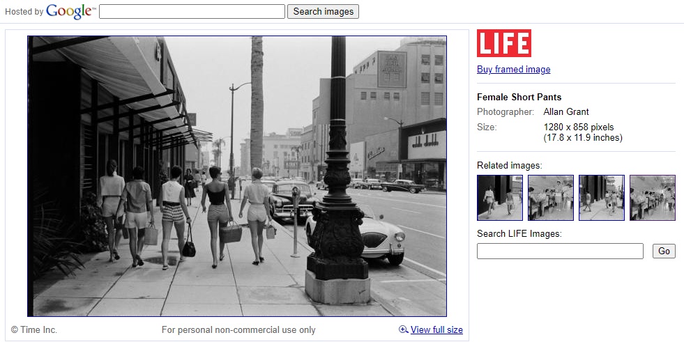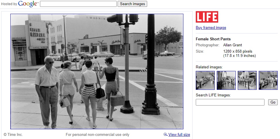 Fotoğrafların 1950’li yılların ortasında ABD’de gözlemlenen kısa şort modasının etkisiyle Life’ın 10 Eylül 1956 tarihli sayısındaki “Short Shorts Become Permanent In U.S. Scene” başlıklı haberi için çekildiği anlaşılıyor.