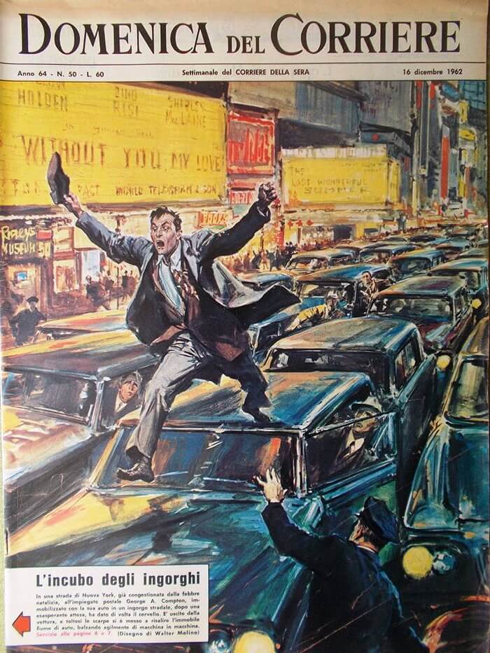 Bahse konu görsel İtalya’da 1899-1989 yılları arasında Corriere della Sera adlı gazetenin eki olarak her Pazar günü yayımlanan La Domenica del Corriere adlı gazetenin 16 Aralık 1962 tarihli baskısının arka kapağında yer almış.