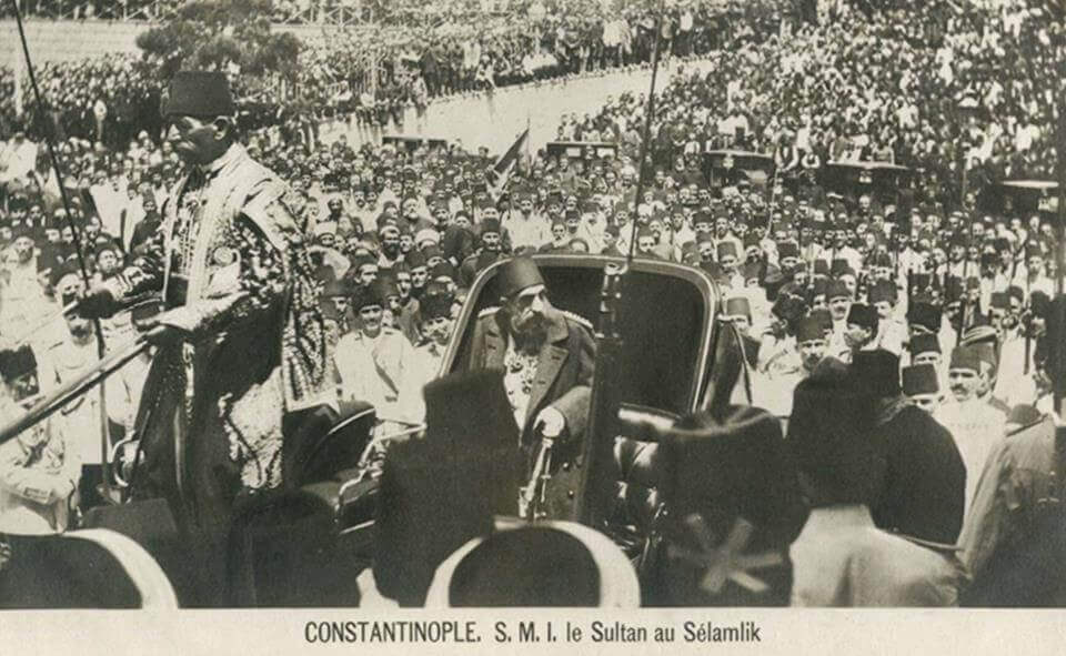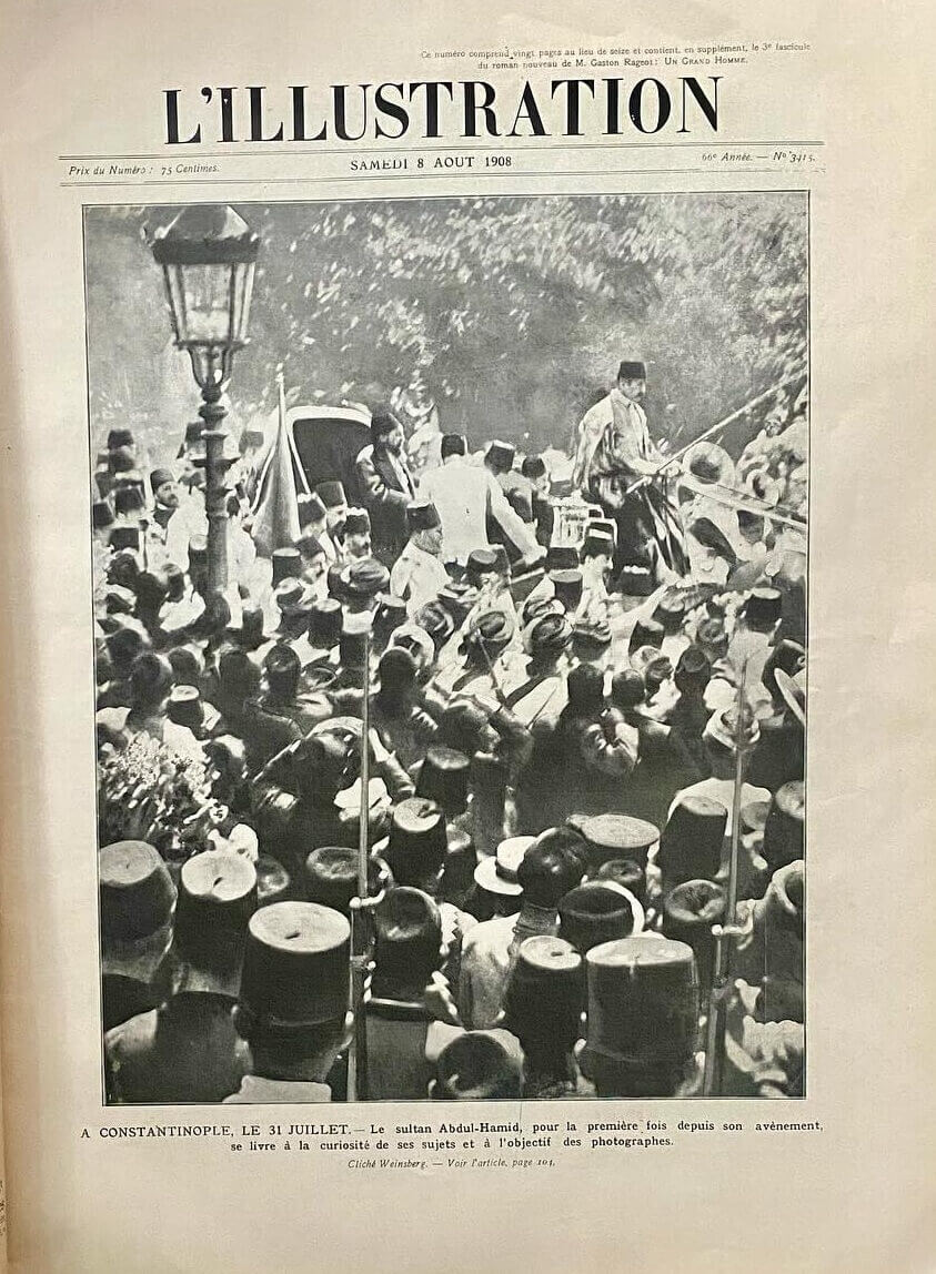 II. Meşrutiyet’in ilanının ardından 31 Temmuz 1908 günü II. Abdülhamid’in ilk cuma selamlığında çekilmiş fotoğrafı L’Illustration dergisinin 8 Ağustos 1908 tarihli (#3415) sayısında yayımlandı.