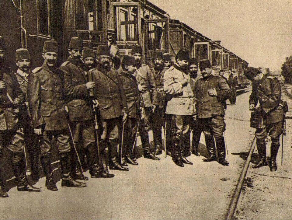 Mustafa Kemal Atatürk’ün 13 Nisan 1909 günü Selanik’ten İstanbul’a hareket eden Hareket Ordusu’nda Erkânıharp Kolağası (Kurmay Kıdemli Yüzbaşı) rütbesiyle görev yaptığı dönemde kaydedilen fotoğrafları şu şekilde: