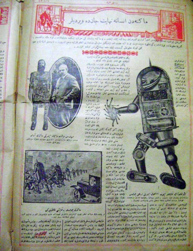 Yazar, hikayesine kanıt olması için Osmanlıca bir gazetenin sayfasını belge diye önümüze sunuyor. Gazete sayfasında üç resim var. Bu resimleri araştırdığımızda, belge olarak sunulan bu gazetede Abdulhamid’in Alamet robotundan bahsedilmediğini anlıyoruz. Gazetede, Adolph Withman tarafından 1909 yılında tasarlanan Barbarossa robotunu ve Science and Invention dergisinin 1924 yılına ait Mayıs sayısında yer alan radyo polis otomatının resimlerini görüyoruz. Ve buradan da anlıyoruz ki, gazete Abdulhamid dönemine bile ait değil. Cumhuriyetin ilk yıllarına ait.”