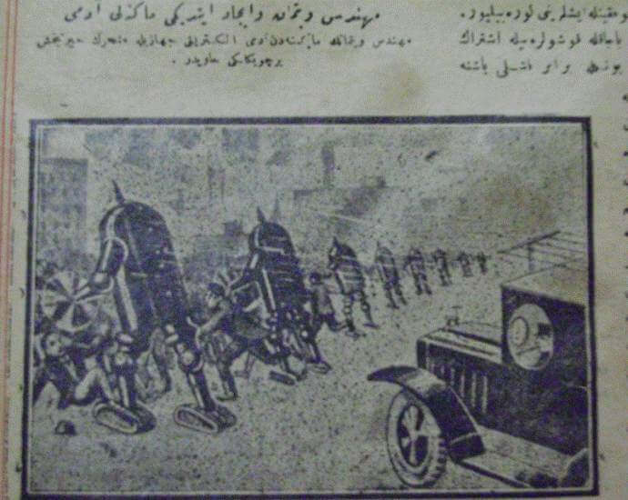 Diğer görsellerdeki robot ise “Gernsback’in Robot Askeri” adıyla bilinen “radyo polis otomatı”na ait.
