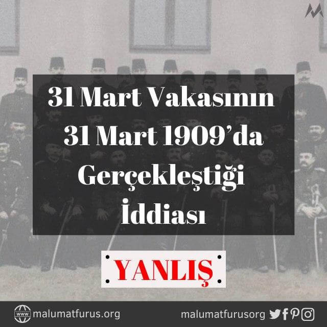 31 Mart Vakası, 31 Mart 1909’da gerçekleşti sanılır. Ancak, Milâdi takvime göre 13 Nisan 1909’da gerçekleşmiştir.