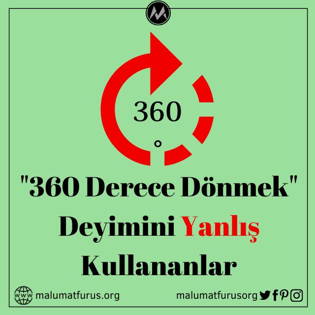 Bir konu hakkında tam ters yönde radikal bir biçimde görüş değiştirilmesine ilişkin kullanılan deyim “180 derece dönmek” olur genelde. Bir noktadan 180 derece açıyla ters istikamete hareket, kişiyi daha önceki pozisyonundan orijinine göre tam ters noktaya getirir. Halbuki, bazı kişilerin bu aksi yöndeki manevraya ilişkin “180 derece” yerine “360 derece” yönünde yanlış bir kullanım yaptıkları görülüyor.