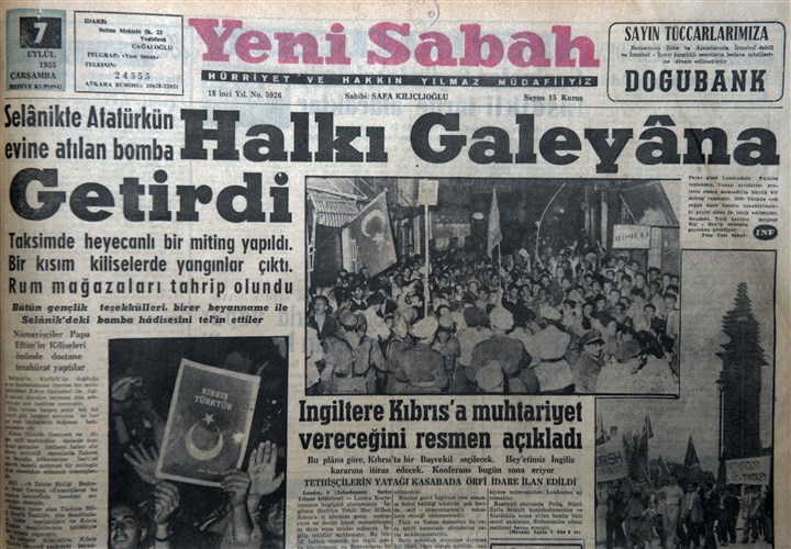 “6 Eylül 1955’te Cumhurbaşkanı Celal Bayar, Başbakan Adnan Menderes ve İstanbul Valisi Fahrettin Kerim Gökay, Beyoğlu’nda Abdullah Efendi Lokantası’nda öğle yemeğindeyken gelen haber “Atatürk’ün evinin bombalandığı” şeklindeydi. Menderes, haberin radyodaki 13.00 haber bültenine yetiştirilmesi talimatı verdi. Birkaç saat içinde Kıbrıs Türktür Cemiyeti, diğer gençlik örgütleri, bazı meslek kuruluşları ve DP teşkilatının öncülüğünde binlerce kişi toplandı. Rum azınlığın yoğun olduğu semtlerde harekete geçen kalabalık, mahkeme zabıtlarına göre, 4 bin 214 ev, 1004 işyeri, 73 kilise, bir sinagog, iki manastır, 26 okul ile aralarında fabrika, otel, bar gibi yerlerin bulunduğu 5 bin 317 mekânı tahrip edip yağmaladı. Dilek Güven’in 6-7 Eylül Olayları adlı kitabında aktardığına göre, olaylarda 11 kişi öldü, en az 60 kadın tecavüze uğradı ve onlarca kişi yaralandı. İzmir’de Yunan pavyonu ve Yunanistan Konsolosluğu ateşe verildi. 14 ev, 6 dükkan, bir pansiyon, bir kilise ve İngiliz Kültür Merkezi tahrip edildi. İktidarın ilk işi olayları “komünistlerin yaptığını” söylemek oldu. Daha sonra Menderes olayların başlangıcını “millî hislerin şevkiyle nezih gösteriler” diye; eski Özel Harp Daire Başkanı Sabri Yirmibeşoğlu da “6-7 Eylül de bir Özel Harp işidir ve muhteşem bir örgütlenmeydi. Amacına da ulaştı” diye yorumladı. Olay, Varlık Vergisi ile başlayan sermayenin Türkleşmesi sürecini hızlandırdı.”