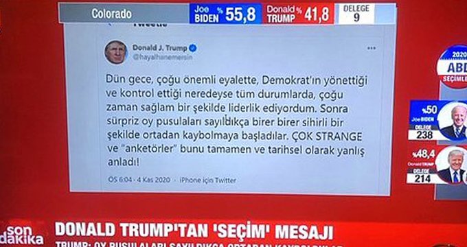 Anlaşılan o ki, A Haber ekibi Donald Trump’ın tweetini Chrome tarayıcısı üzerinden çevirip ekrana sunmuş. Twitter profil uzantısındaki anlamsız değişikliği gözden kaçırmışlar.