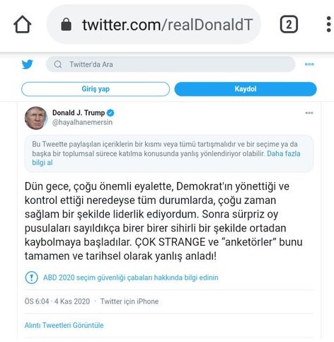A Haber’in Türkçe çevirisini alıntılamaya çalıştığı Donald Trump’ın ilgili tweeti şu şekilde idi: