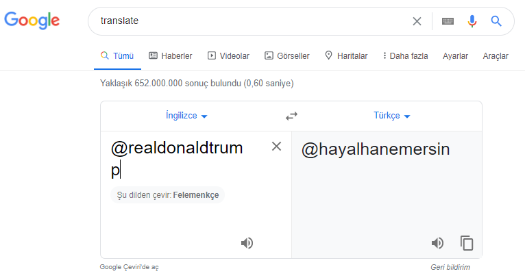 Chrome’un çeviride @realDonaldTrump yerine @hayalhanemersin’i sunmasının kaynağı aslında Google Translate.