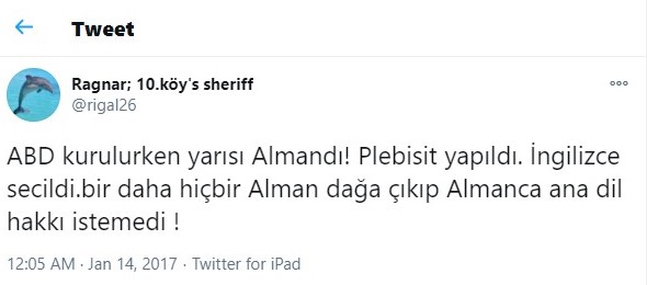 “ABD kurulurken yarısı Almandı! Plebisit yapıldı. İngilizce secildi. bir daha hiçbir Alman dağa çıkıp Almanca ana dil hakkı istemedi !”