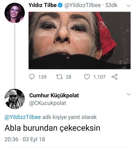 Ancak, Yıldız Tilbe’nin paylaşımına “abla burundan çekeceksin” yanıtının verildiği paylaşım aslında Kürşat Ayvatoğlu’na değil Cumhur Küçükpolat’a aitti.
