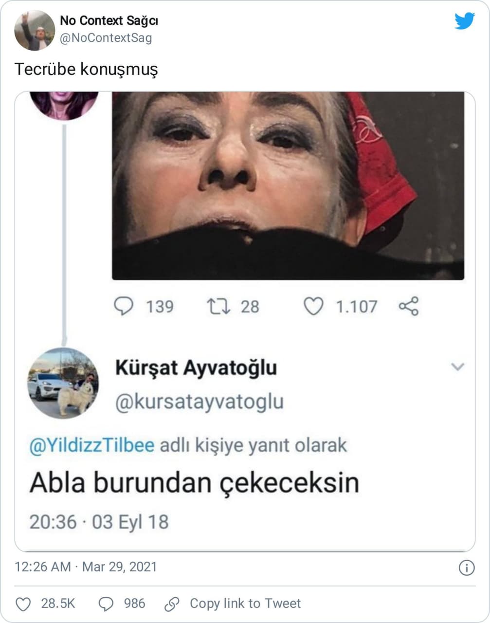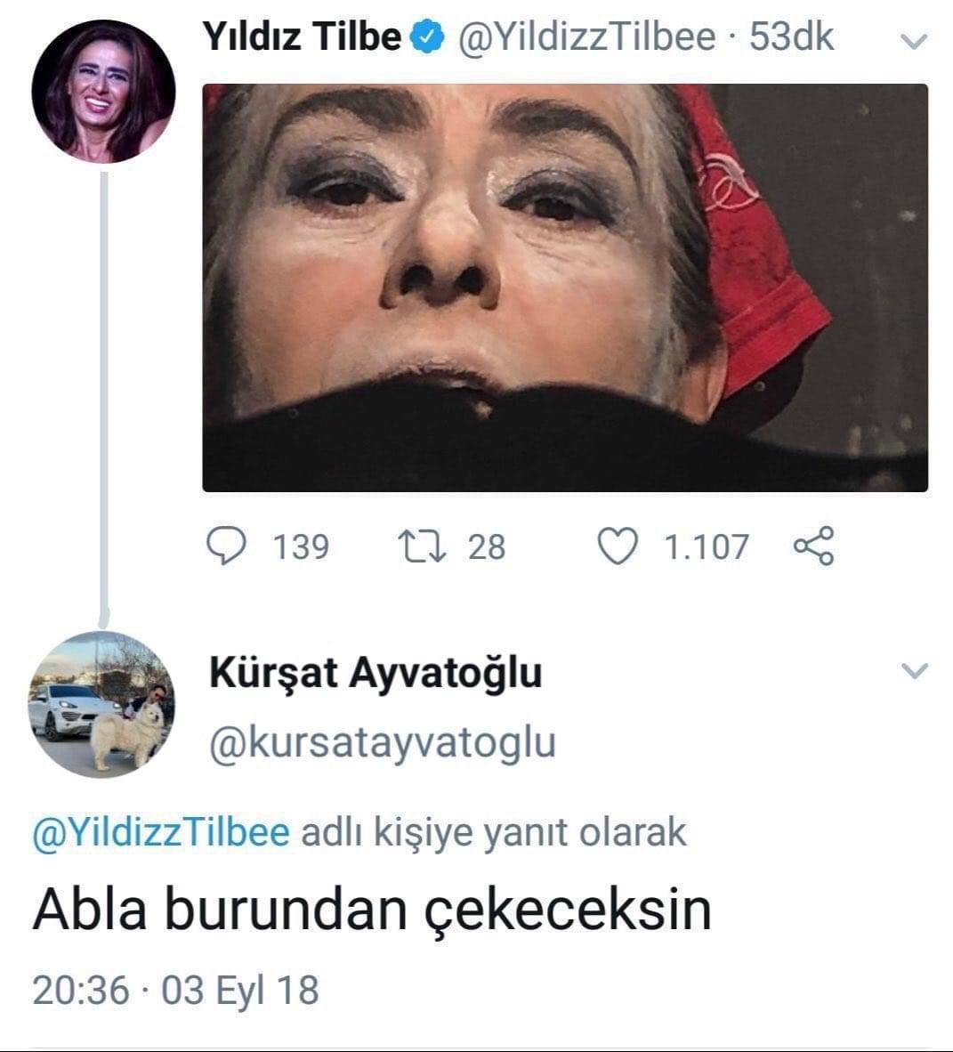Bu süreçte, Kürşat Ayvatoğlu’nun Yıldız Tilbe’nin bir fotoğrafını içeren 2018 yılından paylaşımına “abla burundan çekeceksin” yanıtını verdiği iddiasıyla bir tweet görüntüsünün sosyal medyada paylaşıldığına şahit olduk.