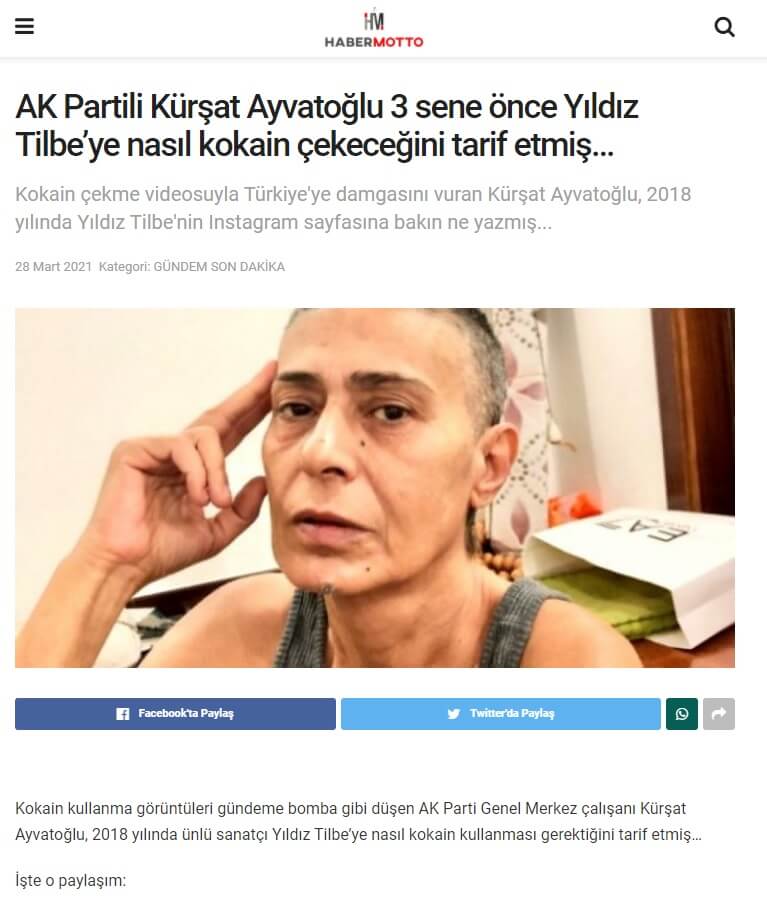 Kokain kullanma görüntüleri gündeme bomba gibi düşen AK Parti Genel Merkez çalışanı Kürşat Ayvatoğlu, 2018 yılında ünlü sanatçı Yıldız Tilbe’ye nasıl kokain kullanması gerektiğini tarif etmiş…
