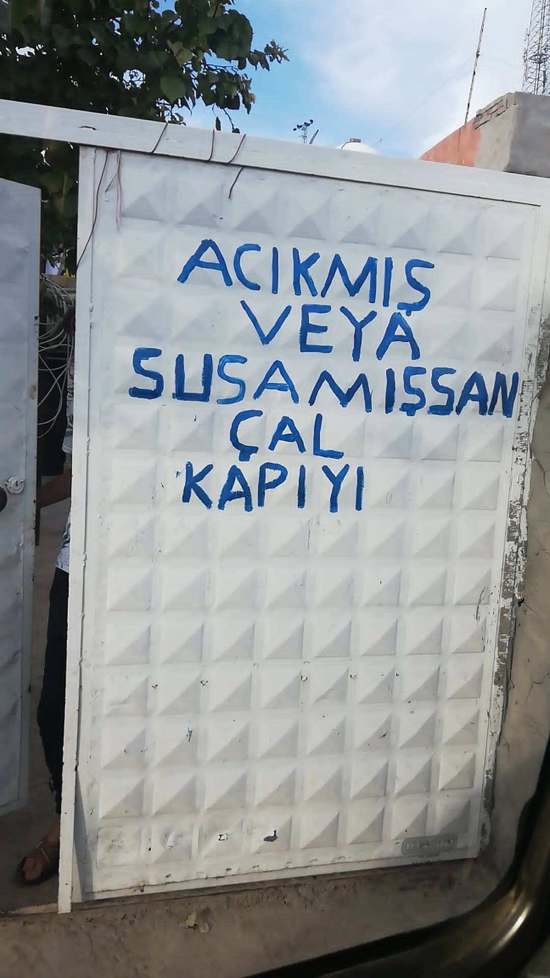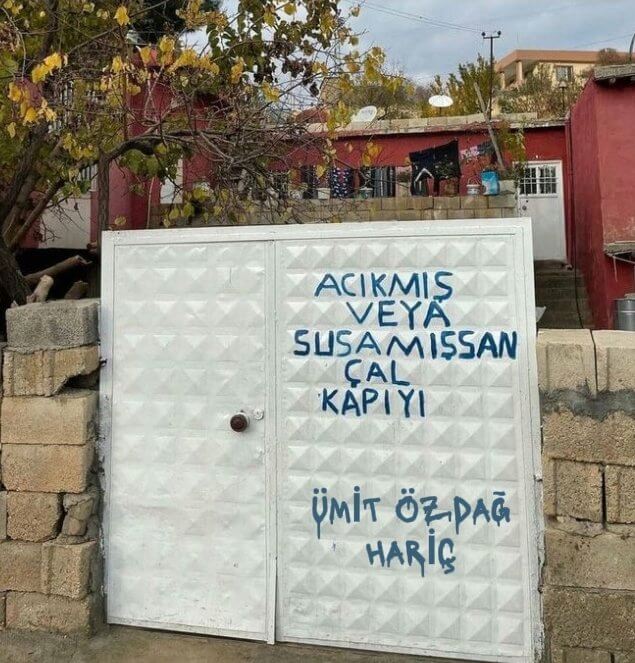 Mardin’de bir evin kapısındaki “acıkmış veya susamışsan çal kapıyı” yazısına dijital ortamda “Ümit Özdağ hariç” eklemesi yapılıp paylaşılmış