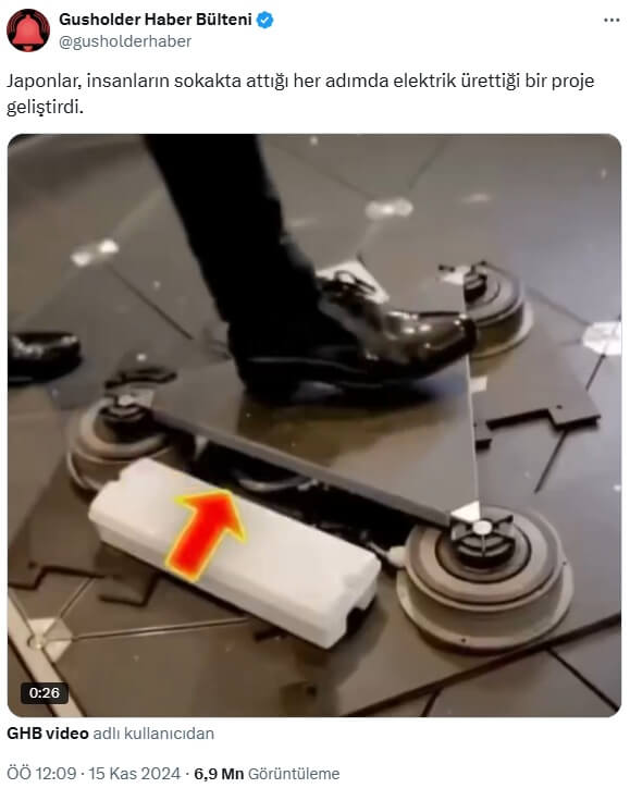 Gusholder Haber Bülteni (@gusholderhaber): “Japonlar, insanların sokakta attığı her adımda elektrik ürettiği bir proje geliştirdi.”