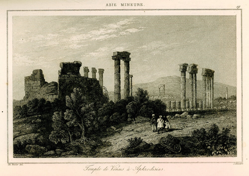 Fransız asıllı arkeolog ve siyasetçi Simon Joseph Léon Emmanuel, Marquis de Laborde (1807-1869), Anadolu’daki (1838-1862) gezilerinin vakayinamesini içeren 1838 tarihli “Voyage de l’Asie Mineure” adlı eserinde Afrodisias’tan gravürlere yer vermişti.