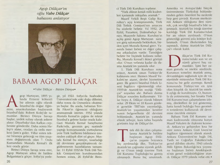 “Mustafa Kemal Paşa’ya ‘Atatürk’ soyadının verilmesini teklif eden,kendisine de Dilaçar soyadı verilen Agop Martayan.”