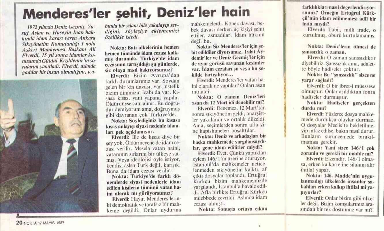 Nokta dergisinin 17 Mayıs 1987 tarihli sayısında yayımlanan röportaj şu şekildeydi: