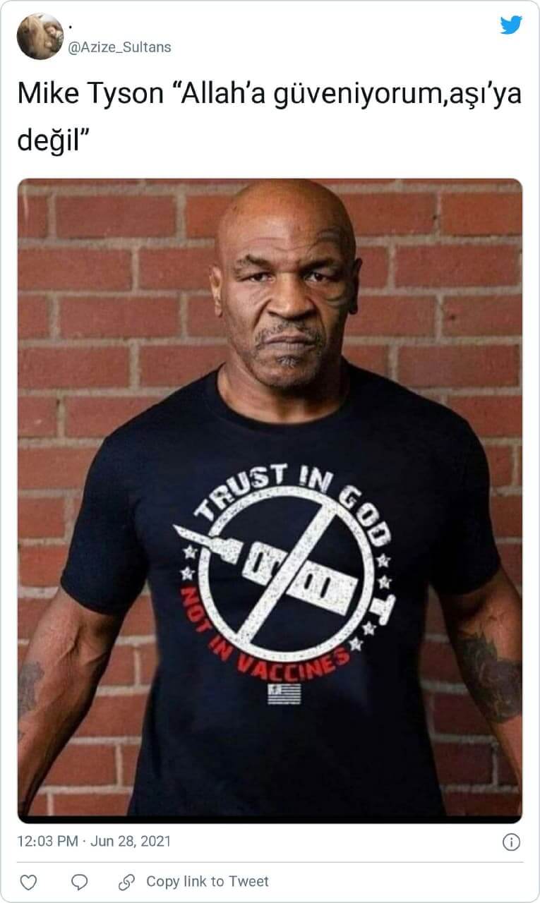 “Ünlü boksör Mike Tyson giydiği tişörtle AŞIYA güvenmiyorum, ALLAH ‘a güveniyorum diyor.”