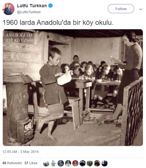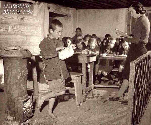 “Yıl 1960. Anadolu’da bir köy okulu” notuyla sosyal medyada paylaşılan fotoğraf şu şekilde: