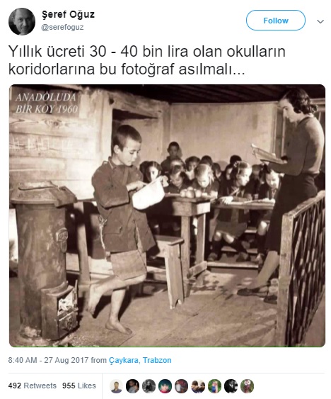 “Yıllık ücreti 30 – 40 bin lira olan okulların koridorlarına bu fotoğraf asılmalı…”