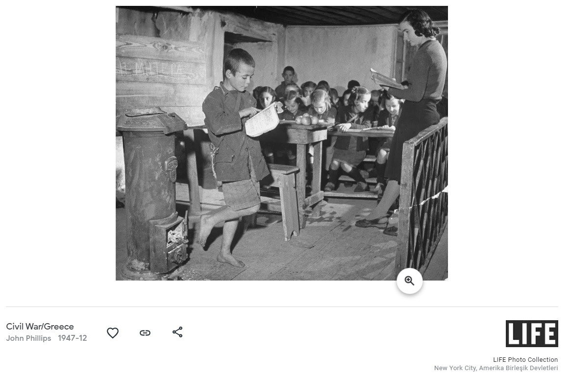 Fotoğraf, Life dergisi fotoğrafçısı John Phillips tarafından Yunanistan’ın Trikala şehrindeki Louzesti kasabasında 1947 yılı Aralık ayında çekmiş.