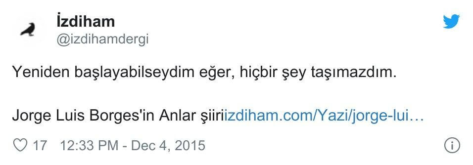 Ahmet Şerif İzgören de bir kitabında bu şiiri Borges’e atfetme hatasına düşmüştü.