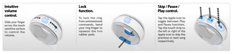 Görsel, Apple’ın iPod ürününü Bluetooth aracılığıyla kontrol etmek üzere “iRing” adlı bir akıllı yüzüğe yönelik Emily Soto adlı tasarımcı tarafından hazırlanmış.