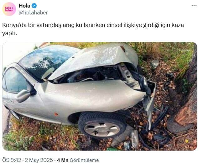 Hola (@holahaber): “Konya’da bir vatandaş araç kullanırken cinsel ilişkiye girdiği için kaza yaptı.”
