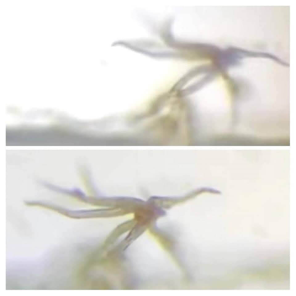 Türkiye’de pek rastlanamasa da yurt dışından sosyal medya kullanıcılarının aşıda yer alan parazit sanarak paylaştığı görüntü ise Singapurlu bir dalgıç olan Denise McIntyre tarafından 9 Aralık 2019 tarihinde Endonezya’nın Raja Ampat kentinde çekilen ve 27 Aralık 2019 tarihinde YouTube’a yüklenen, gerçekte var olan bir deniz hayvanı olan bir krinoid (deniz lalesi / mantarı / leylağı) videosundan alıntı.