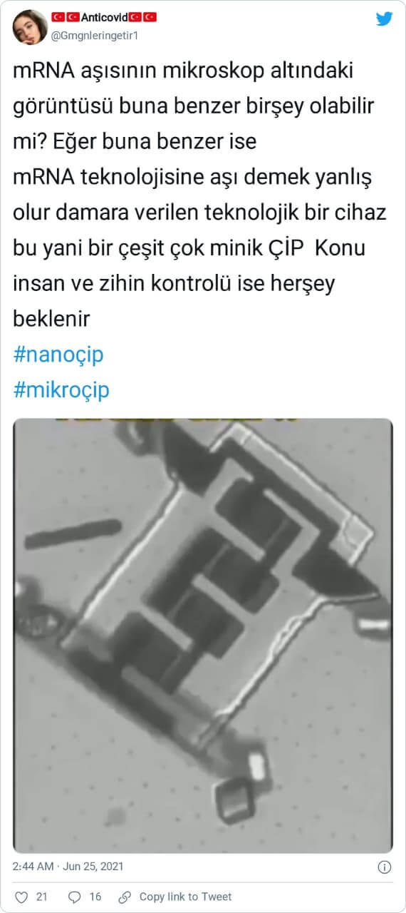 “mRNA aşısının mikroskop altındaki görüntüsü buna benzer birşey olabilir mi? Eğer buna benzer ise mRNA teknolojisine aşı demek yanlış olur damara verilen teknolojik bir cihaz bu yani bir çeşit çok minik ÇİP Konu insan ve zihin kontrolü ise herşey beklenir #nanoçip #mikroçip”