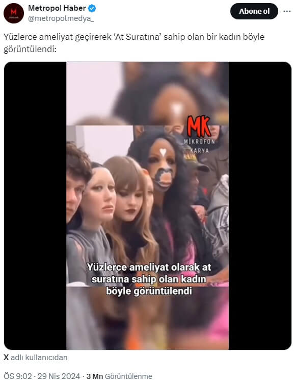 Metropol Haber (@metropolmedya_) & Whisper (@whisperhaber): “Yüzlerce ameliyat geçirerek ‘At Suratına’ sahip olan bir kadın böyle görüntülendi:”