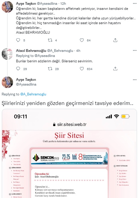 Hatta, “Bilmelisin ki” ve “Öğrendim ki” başlıklı metinlerin birbirine karıştırılarak yine Ataol Behramoğlu’na atfedildiğine şahit oluyoruz.