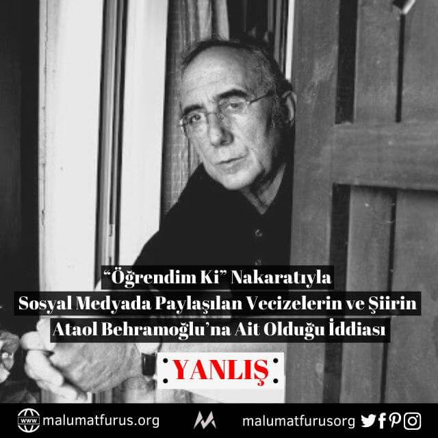 “Öğrendim Ki” Nakaratıyla Sosyal Medyada Paylaşılan Vecizelerin ve Şiirin Ataol Behramoğlu’na Ait Olduğu İddiası Doğru Değil