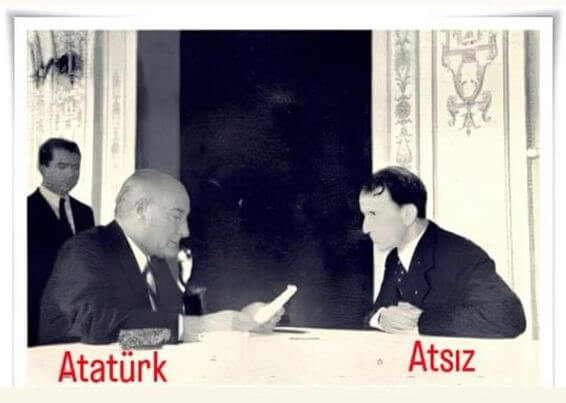 Mustafa Kemal Atatürk’le birlikte Türk milliyetçisi, yazar, şair, öğretmen ve tarihçi Hüseyin Nihâl Atsız’ın (12 Ocak 1905 – 11 Aralık 1975) aynı masada görüntülendiği sanılarak aşağıdaki fotoğrafın sosyal medya platformlarında paylaşıldığına şahit oluyoruz.