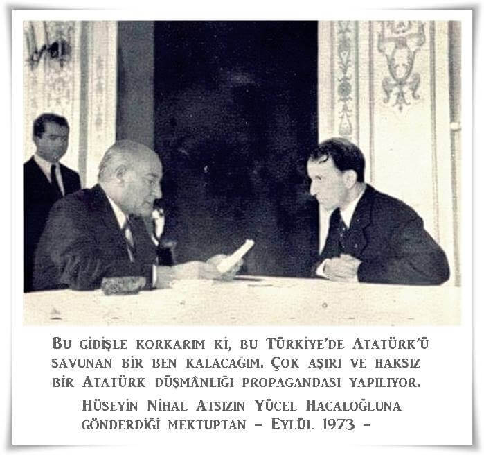 Söz konusu fotoğrafın, fikirleriyle ve kalemiyle özellikle Türk milliyetçiliği üzerinde büyük etkiye sahip Nihal Atsız’ın Yücel Hacaloğlu’na 1973 Eylül ayında gönderdiği mektupta geçen “Bu gidişle korkarım ki, bu Türkiye’de Atatürk’ü savunan bir ben kalacağım. Çok aşırı ve haksız bir Atatürk düşmânlığı propagandası yapılıyor.” cümlesiyle birlikte paylaşıldığı da görülüyor.