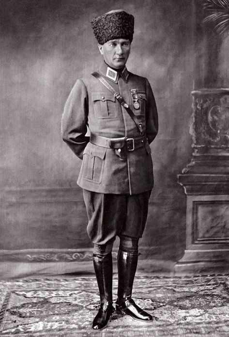 Yukarıdaki fotoğrafın aşağıda Atatürk’ün 1912 yılında çekildiği askerî üniformalı fotoğrafı ile sanal alemden rastgele bir kurt fotoğrafının birleştirilmesiyle oluşturulduğu anlaşılıyor.