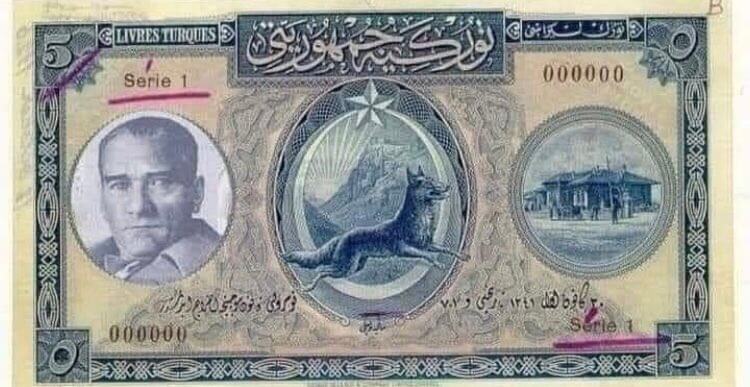 1927 yılında dolaşıma giren 5 liralık banknotta bozkurt figürü yer alsa da Atatürk’ün resmi montajla eklenmişti. Türkiye Cumhuriyeti’nin bastırdığı ilk seri banknotlarda Atatürk’ün resmi yer almıyordu.