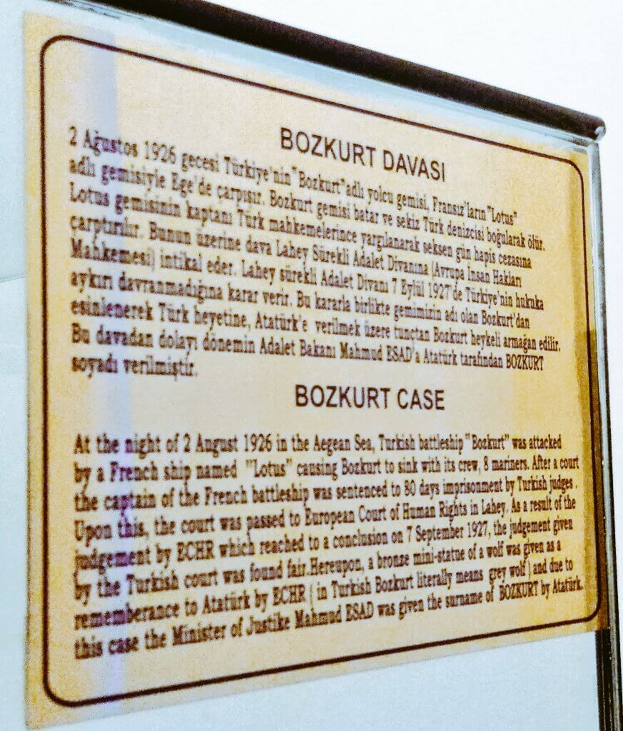 1926 yılında yaşanan Bozkurt-Lotus davasının akabinde Atatürk’e davaya konu gemimizin adından hareketle bir bozkurt hatıra heykeli hediye edilmişti.