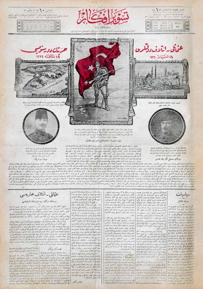 Mustafa Kemal’in gazetedeki ilk resminin 1915 yılında Tasvir-i Efkar Gazetesi’nde “Çanakkale muharebat-ı berriyesinde fevkalade yararlıkları görülen ve emri müdafaadaki iktidaar ve mahareti ile bihakkın ihrazı şan-u şeref eyleyerek boğazları ve makamı hilafeti kurtaran kumandanlarımızdan celadeti fıtriyye ve havârıkı hamaset ile mümtaz Miralay Kemal Bey Efendi” notuyla yayımlandığı da iddia edilmişti (Abidin Davet ve Necati Güngör’den Sibel Eraltan’ın aktardığına göre Çanakkale kahramanı Mustafa Kemal’in bu resmini yayımlanmasına onay veren Sansür Zabiti’ne 3 gün hapis cezası verilmiştir).