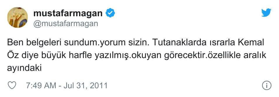 "Ben belgeleri sundum.yorum sizin. Tutanaklarda ısrarla Kemal Öz diye büyük harfle yazılmış.okuyan görecektir.özellikle aralık ayındaki"