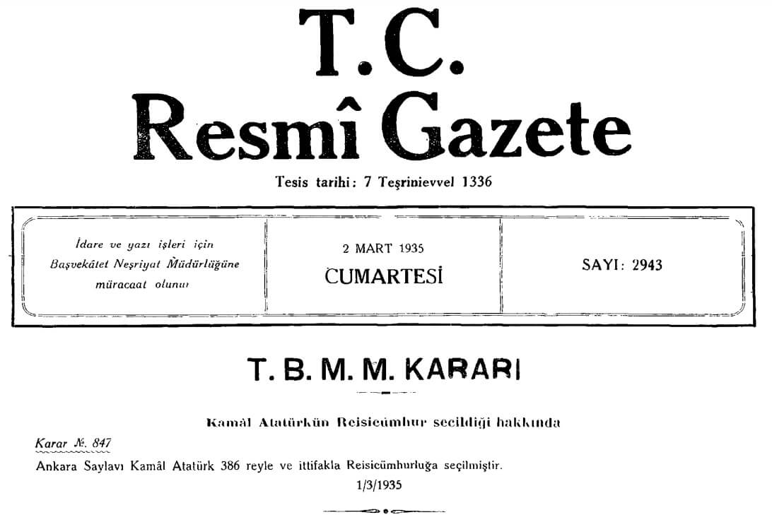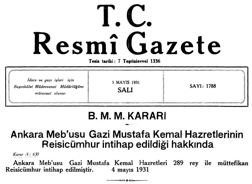 Yapılan Anayasa değişikliğinin ardından 29 Ekim 1923 günü TBMM’de yapılan seçimde Mustafa Kemal Atatürk, 158 milletvekilinin oy birliğiyle ilk Cumhurbaşkanı seçilmişti.