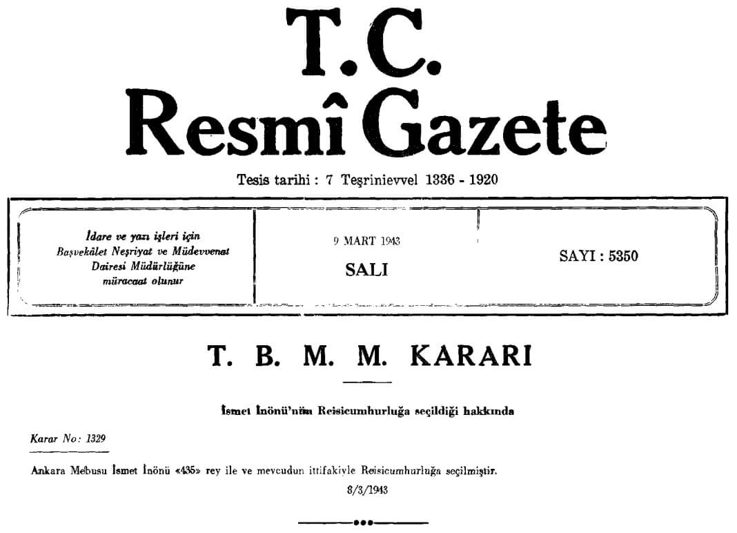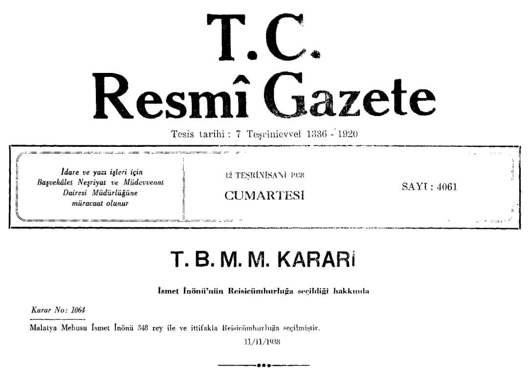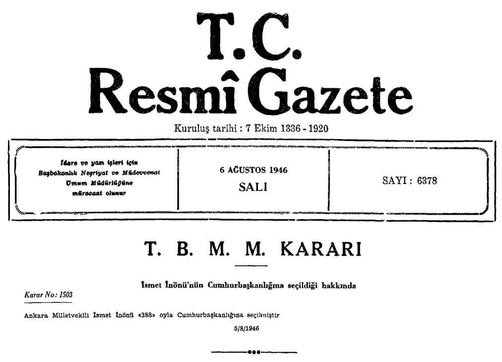 Mustafa Kemal Atatürk, 29 Ekim 1923, 1 Kasım 1927, 4 Mayıs 1931 ve 1 Mart 1935 tarihlerinde, İsmet İnönü ise 11 Kasım 1938, 3 Nisan 1939, 8 Mart 1943 ve 5 Ağustos 1946 tarihlerinde Türkiye Büyük Millet Meclisinde (TBMM) yapılan oylama sonucunda Cumhurbaşkanı seçilmişti.