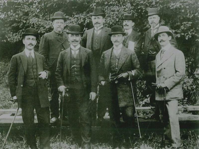 1910 Eylül ayında kaydedilen fotoğrafta Kolağası Mustafa Kemal Bey-, Fransa’da Picardie Manevraları esnasında, yabancı subaylarla birlikte bir ziyafette görüntülenmiş.