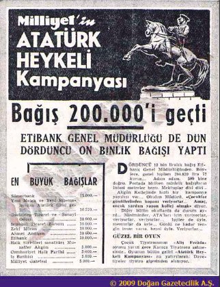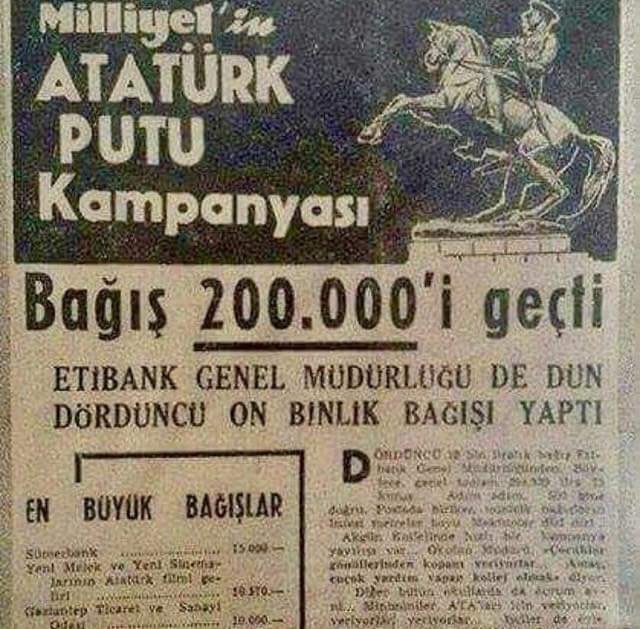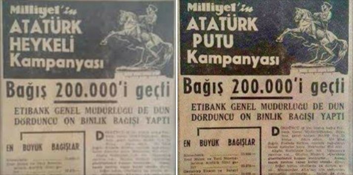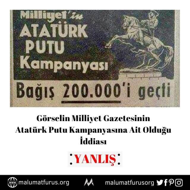 Sosyal medyada paylaşılan bir gazete küpürünün Milliyet gazetesinin Atatürk putu’ için düzenlediği kampanya ile vatandaşlardan para topladığı bir kampanyaya ait olduğu iddiasıyla paylaşıldığına şahit oluyoruz.
